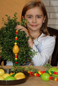Am Palmsonntag wird an den Einzug Jesu nach Jerusalem gedacht, dem die Menschen mit riesigen Palmwedeln zujubelten. Echte Palmen sind in Deutschland aber nur schwer erhältlich. Aus diesem Grund wird heute meist Buchsbaum als Palmersatz verwendet. Außer Buchsbaum benötigt man Perlen, bunte Kreppbänder, Holzstäbe, Blumendraht, Krepp-Klebeband und bunt bemalte Eier, die zuvor ausgeblasen wurden. Der Buchs wird mit Draht und dem Krepp-Klebeband an einem Stockende befestigt. Die ausgeblasenen Eier sowie die bunten Perlen können nun beliebig auf den Draht gezogen werden. Diesen Draht einfach in den Buchs stecken und befestigen. Zur Verschönerung und Abdeckung des Krepp-Klebebandes können die bunten Kreppbänder am Stockende angebracht werden. |